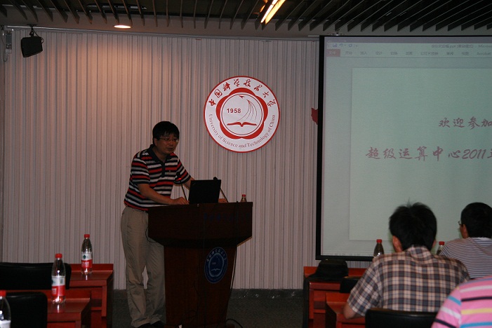 7月8日下午,中国科大“超级运算中心2011年用户会议”在理化大楼一楼科技展厅举行。研究生院副院长陈伟、公共实验中心主任鲁非、办公室主任曹一雄、超级运算中心专家组成员丁泽军、傅尧、杨金龙等以及超算用户师生代表近70人应邀出席会议。会议由网络信息中心主任兼超级运算中心主任李京主持。