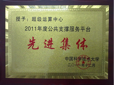 超级运算中心在此次的冬季工作会议评选表彰中,荣获"2011年度公共支撑服务平台"先进集体。