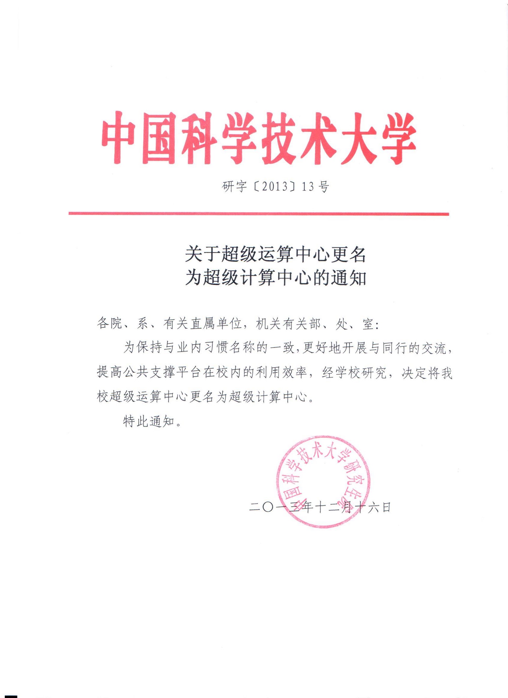 关于超级运算中心更名为超级计算中心的通知