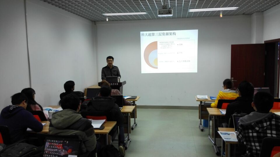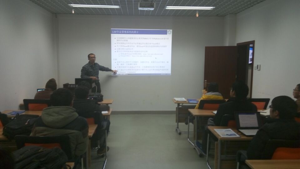 2015年11月24-27日四天下午在超级计算中心实训室举行了超算用户培训,针对用户需要的上机指南以及作业调度系统、Linux和编译运行环境的使用、高性能计算系统配置等内容进行了相关培训,并解答了在超算使用遇到的一些问题等。